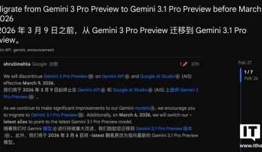 谷歌 3 月 9 日起停用 Gemini 3 Pro Preview,开发者需迁移至 3.1 版