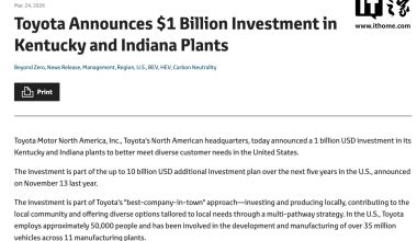 丰田将投资10亿美元,扩建美国肯塔基、印第安纳州工厂产能