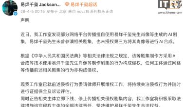 多部短剧 AI 角色“撞脸”易烊千玺,工作室发声明称已委请律师开展维权工作