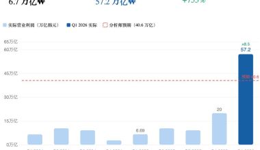 三星2026年第一季度营业利润达57.2万亿韩元,主要得益于AI数据中心建设导致的存储芯片短缺。三星押注HBM4芯片,缩小与SK海力士差距。但中东战争、Google新技术及市场周期带来不确定性。