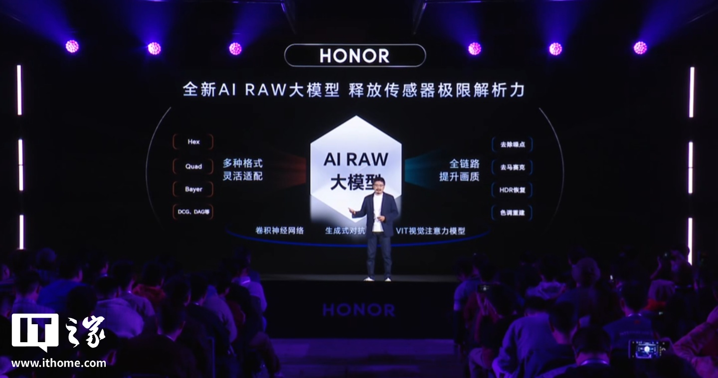 IT之家 3 月 3 日消息,荣耀在昨日晚 2025 年世界移动通信大会(MWC)上正式推出以 AI 为中心的影像品牌 AIMAGE,含端云协同的 AI KERNEL 与 AI 生态系统。据介绍,端侧大模型提高图像清晰度,云端大模型助力长焦摄影,AI 修图,端云协同实现全场景影像突破。