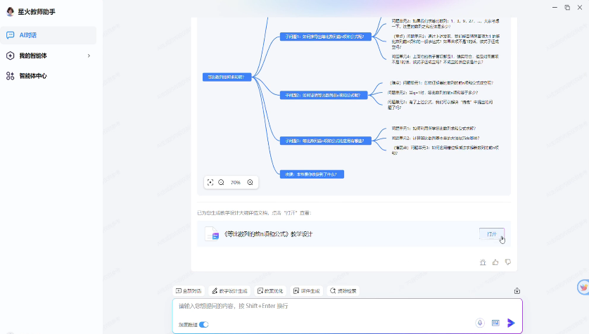 在备课时,比起之前直接线性流程生成教学设计,现在的星火教师助手能够结合教师意图,明确教学的重难点和要达成的目标,并在教学设计生成过程中一步步进行说明,便于老师理解生成内容的逻辑性、启发创新灵感。