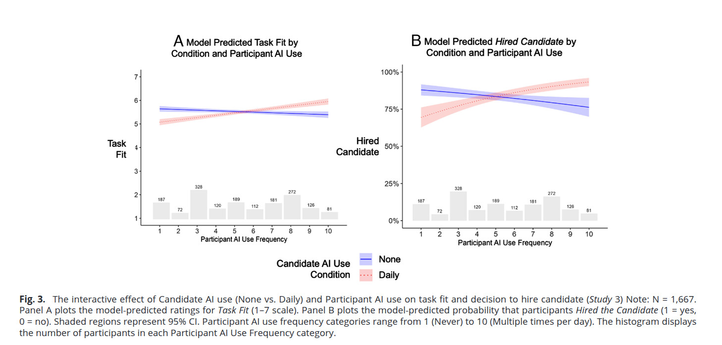 此外,这一偏见还可能影响实际的商业决策。在一次招聘模拟中,不常使用 AI 的经理更不愿意雇用频繁使用 AI 的候选人,而经常使用 AI 的经理则更倾向于雇用使用 AI 的候选人。这一现象也与研究中的其他发现相符:较少使用 AI 的评估者往往认为 AI 使用者更懒惰。