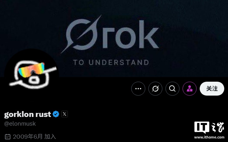 IT之家注意到,马斯克将其在 X 平台的昵称更改为“gorklon rust”,头像也进行了修改,大力推广 Grok。