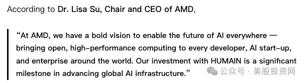 AMD CEO苏姿丰表示,与Humain的合作标志着全球AI基础设施建设进入新阶段。双方将共同打造一个在性能、开放性与覆盖范围方面“前所未有”的全球AI平台。