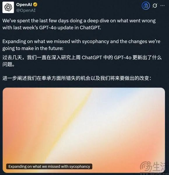 在OpenAI后续给出的调查报告中显示,因为他们过于关注短期反馈(比如用户随手的点赞/点踩),而没有充分考虑到用户与ChatGPT的互动是随时间演变的,所以导致GPT-4o逐渐倾向于做出更令人愉快的回应。然而OpenAI的这份报告只是浮光掠影,并未从根本上解释这个小小的改动为何会让ChatGPT直接“改头换面”。