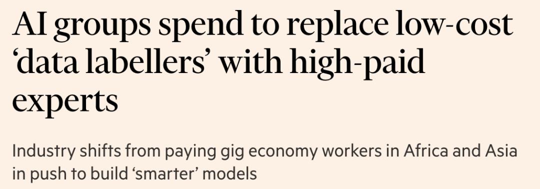 据报道,国际上顶级AI集团正在用高薪的行业专家替代非洲和亚洲低成本的「数据标注员」。