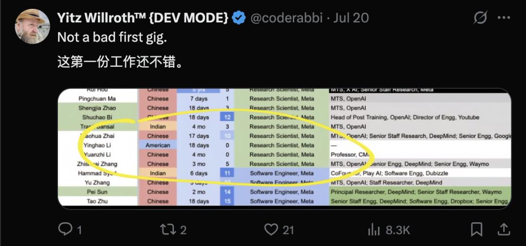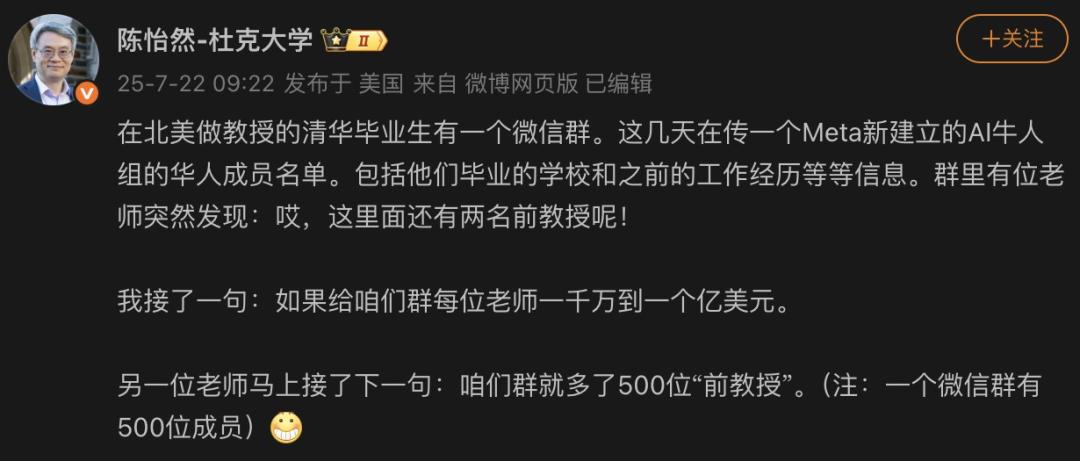 不过,即便是清华的毕业生、即便也是美国的教授,也不是人人都有机会参加Meta的这波「AGI选秀」。