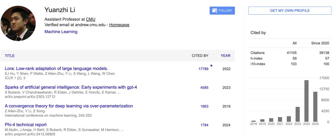 而这些「中国大学生」中,清华校友Yuanzhi Li又是比较独特的一位:之前,他是卡内基梅隆大学的助理教授,没有业界工作经验。
