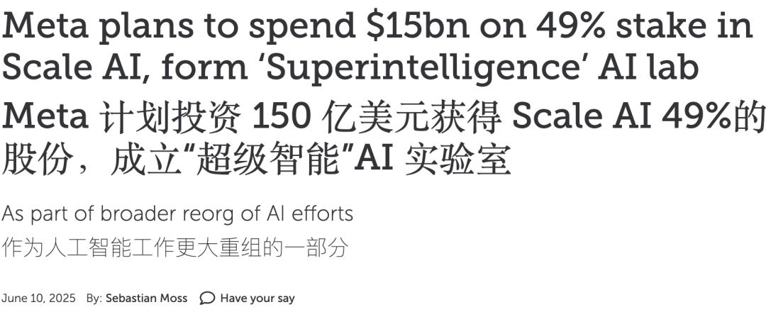例如,在6月,Meta向美国的Scale AI投资了150亿美元,使其估值翻倍至290亿美元,以追赶竞争对手。