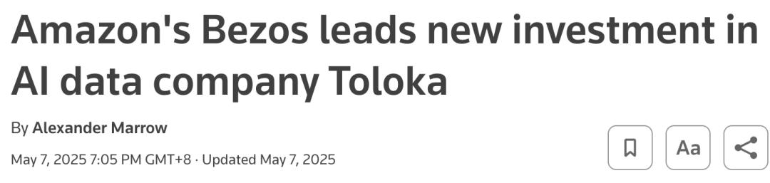 贝索斯的个人公司Bezos Expeditions则在5月领投了Toloka的7200万美元融资轮次。