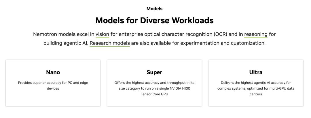 为满足不同场景需求与用户定位,英伟达在此生态的基础上推出了三个不同定位的大语言模型系列——Nano、Super和Ultra。