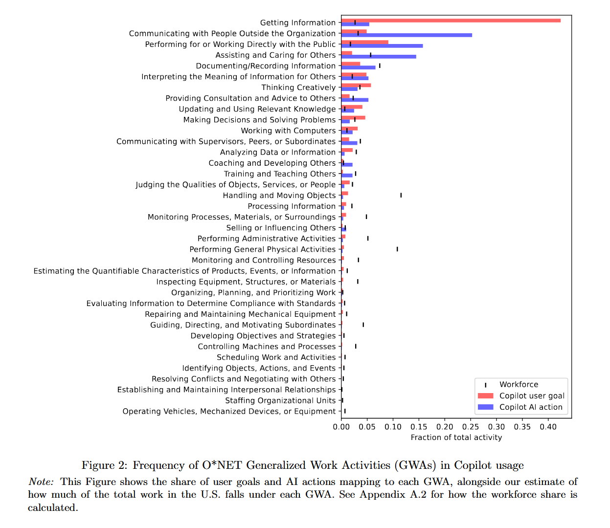 作家、销售代表和客服也高居榜首。这些工作通常涉及大量的沟通任务,用户经常将这些任务交给 Copilot,并取得了良好的结果。