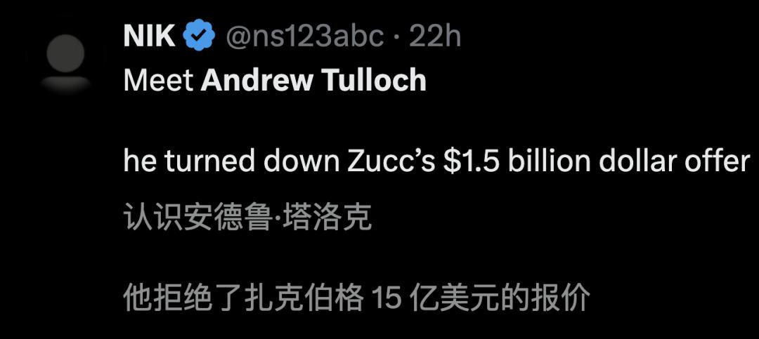 Meta前高管Mike Vernal对Tulloch更是赞不绝口,「他是一位绝对公认的AI天才」。