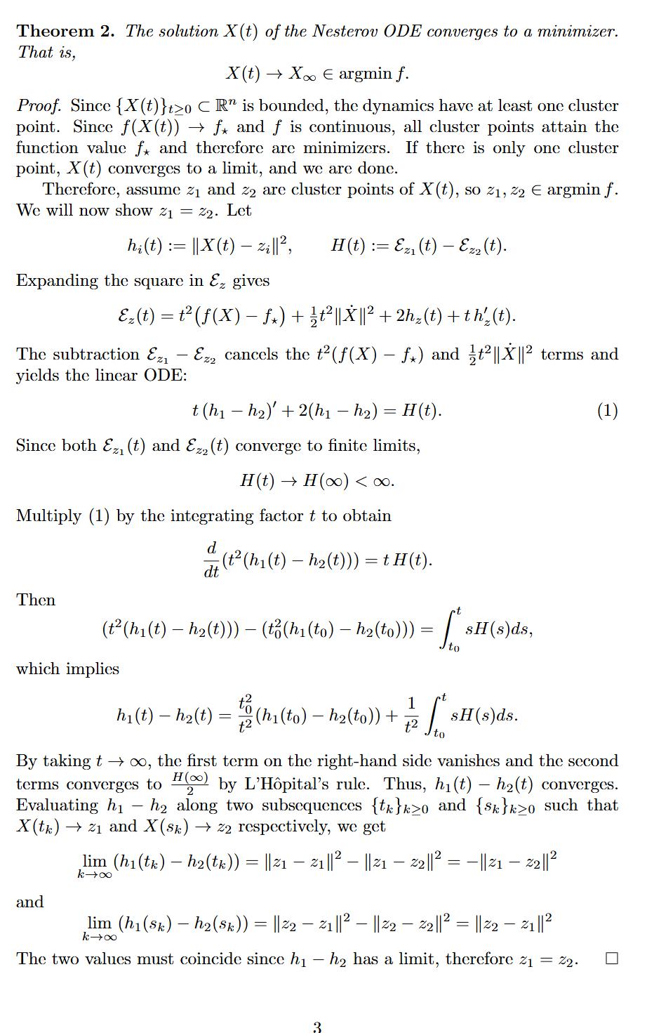 同样,AI 基于此给出的分析是:Nesterov ODE (常微分方程) 的解 X (t) 最终会收敛到函数 f 的某一个最小值点 X∞。