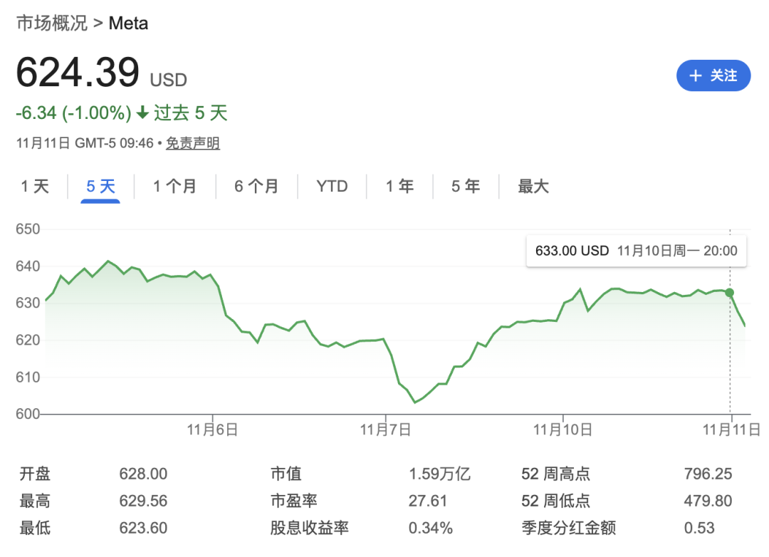 消息一出,Meta的市值直接在盘前交易中蒸发了1.5%,也就是200多亿美金,大致相当于1400多亿人民币,并且开盘后仍在持续下跌。