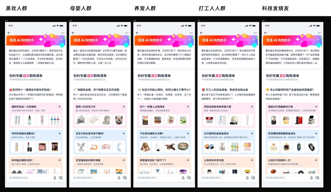 事实上,电商作为距离AI落地最近的领域之一,近两年的淘宝始终在不断尝试和开辟AI的新应用场景。而这次的双11,正是这场静默变革的首次集中检阅——在流量分发、消费者体验和商家经营三个方面,淘宝率先将AI全面应用于交易各个环节,用“好用的AI”,帮助电商交易“提效”。