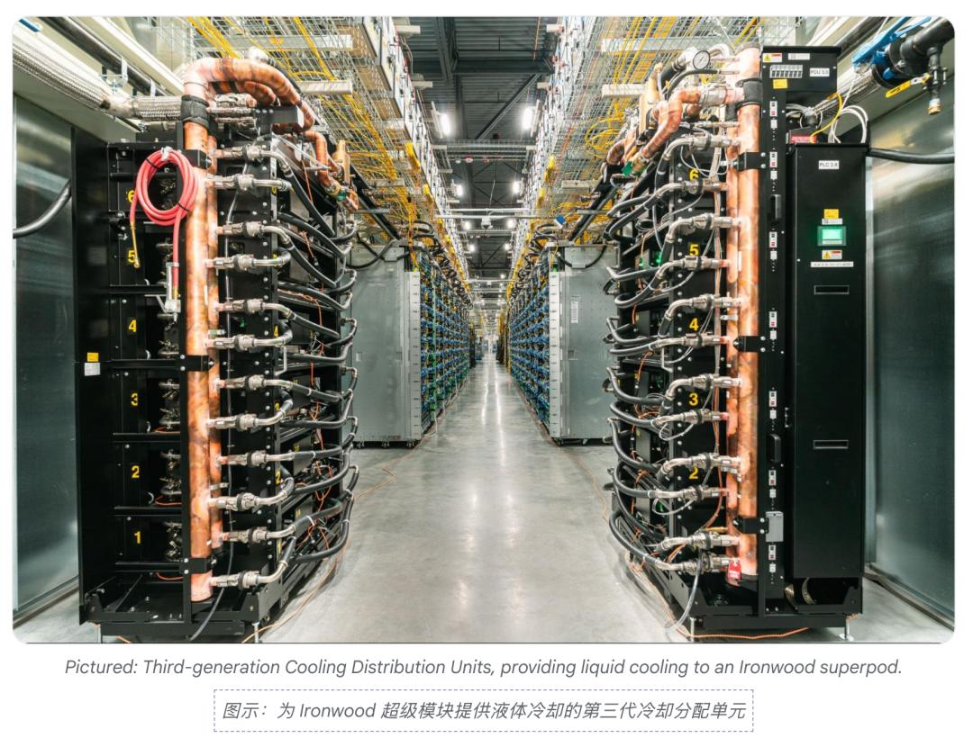为了应对急剧增加的功率密度,液冷技术被引入并成为TPU Pod的标准配置,这使谷歌能够进一步挑战性能极限。