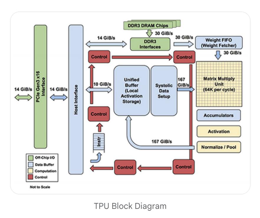 它与CPU和GPU的关键区别在于:TPU专为高吞吐量的低精度计算(如8位整数)而设计。