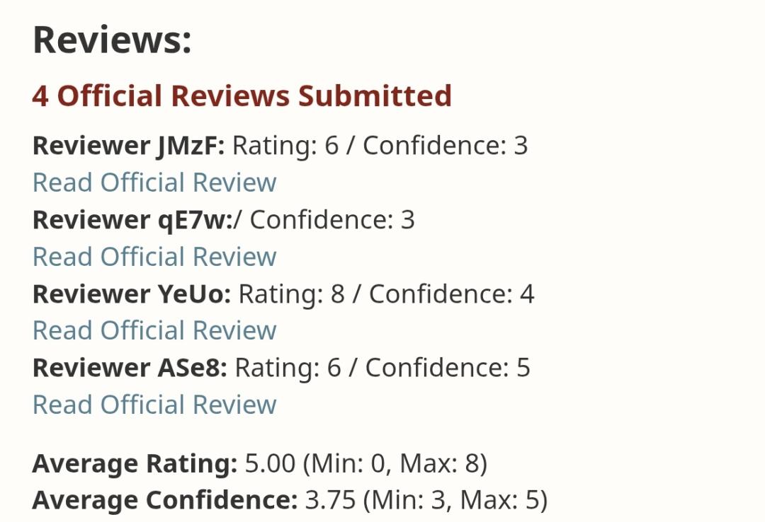 审稿人Cheems Wang注意到所在领域没变论文至少有一个极端分数,今年的评分确实保守了。