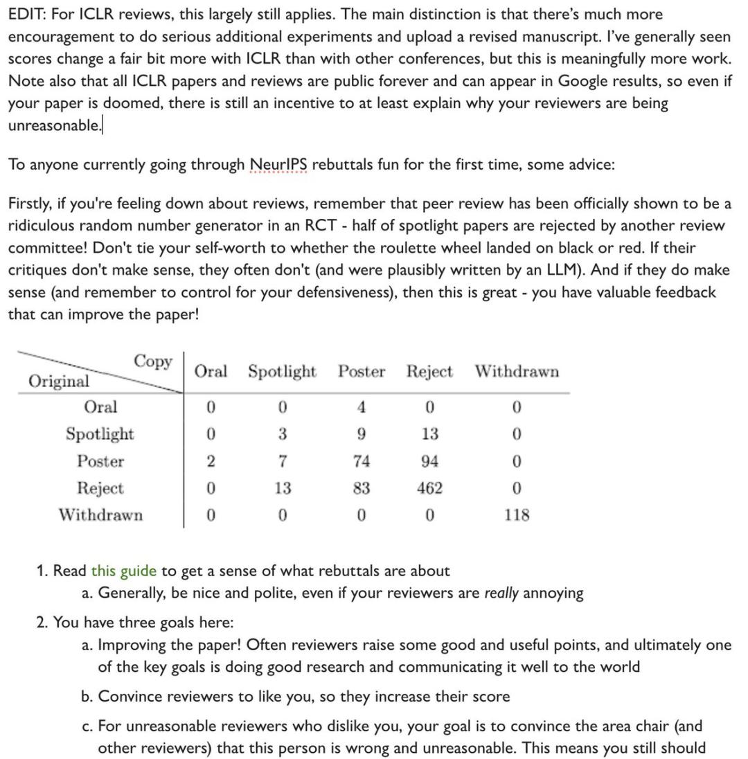这份反驳指南本来是为了顶会NeurIPS而写,但就ICLR来说,Neel Nanda认为以上情况依然普遍存在。