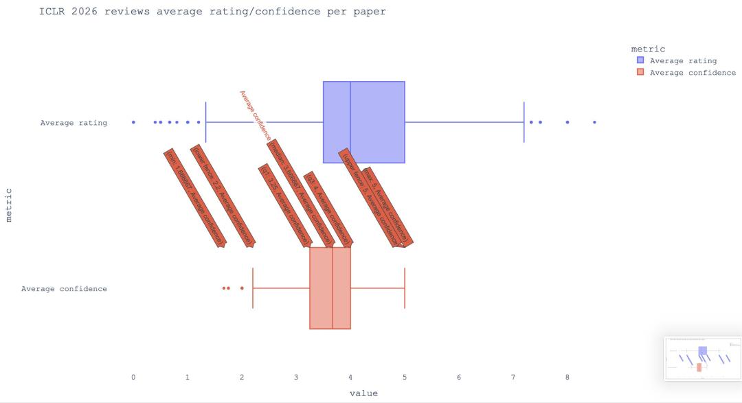 ICLR 2025平均分为5.12分,ICLR 2026平均为4.20。