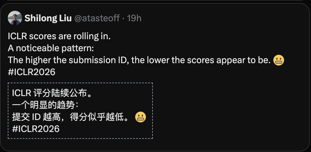 清华大学博士、普林斯顿博士后发现了ICLR 2026明显的评分模式: