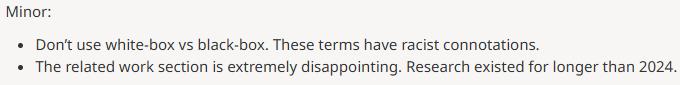 原因竟是论文中提到「白箱 VS 黑箱」,被认为这些词汇「带有种族歧视的隐含意义」,要求小改。