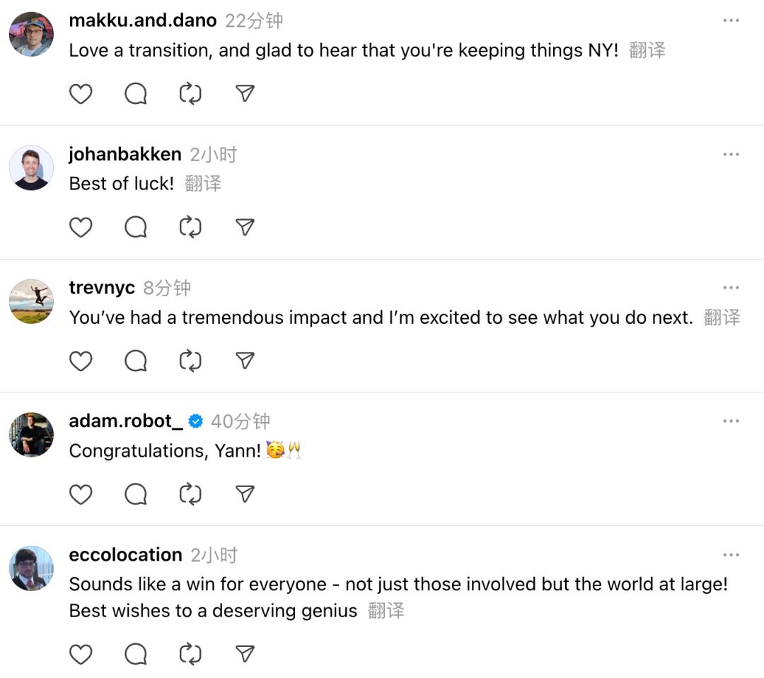 评论区里的人们纷纷为 Yann LeCun 的离职送上祝福,并对他的未来充满期待。