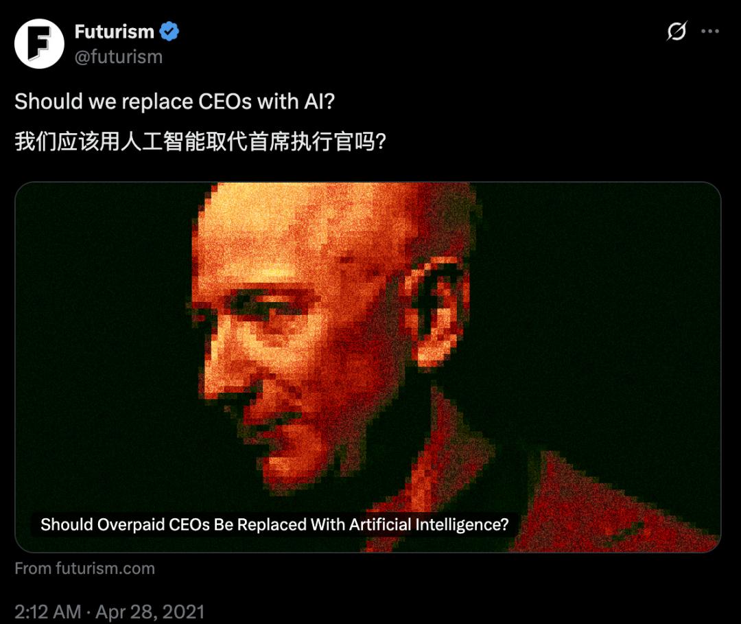与一些公司高层热衷于鼓吹用AI取代入门级和白领岗位相比,用AI取代CEO(高管),也许是一种更加立竿见影,同时也不会影响到公司持续发展的方案。