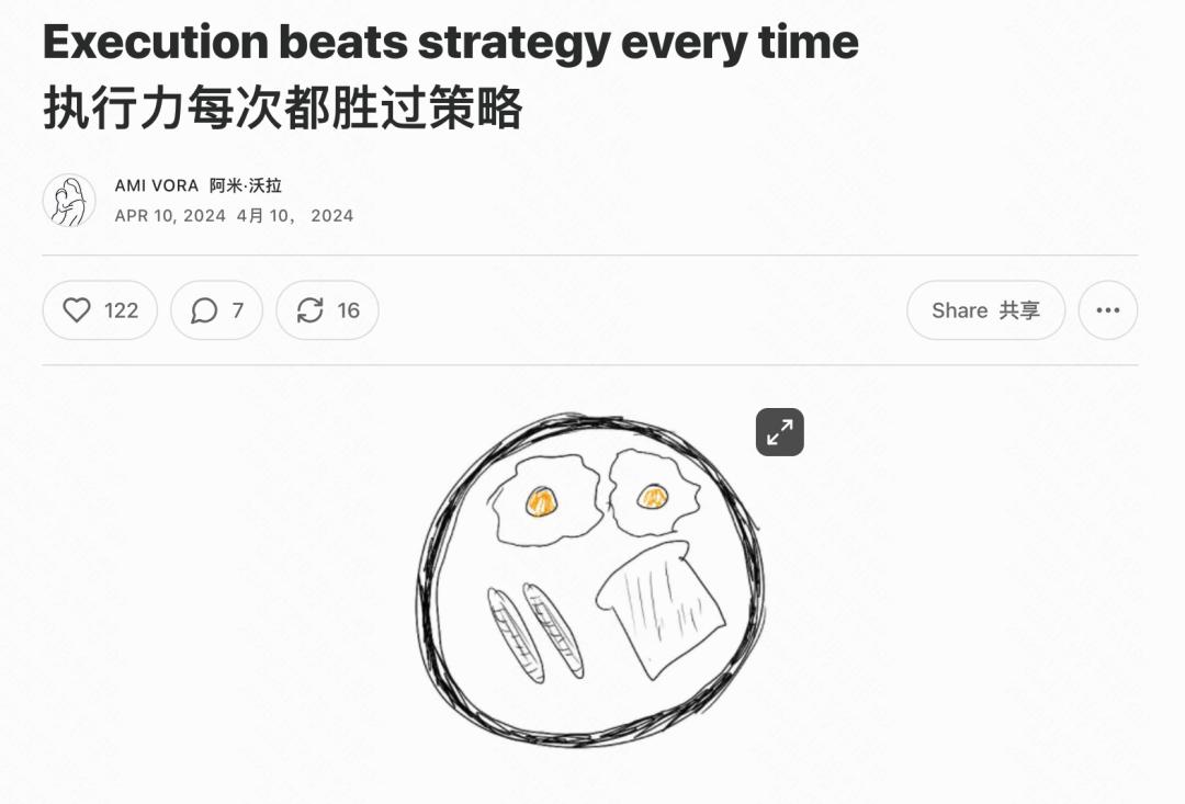 Peter: 你还写过一篇关于执行力的文章,提到“Execution eats strategy for breakfast(执行力胜过策略)”。能具体解释下吗?