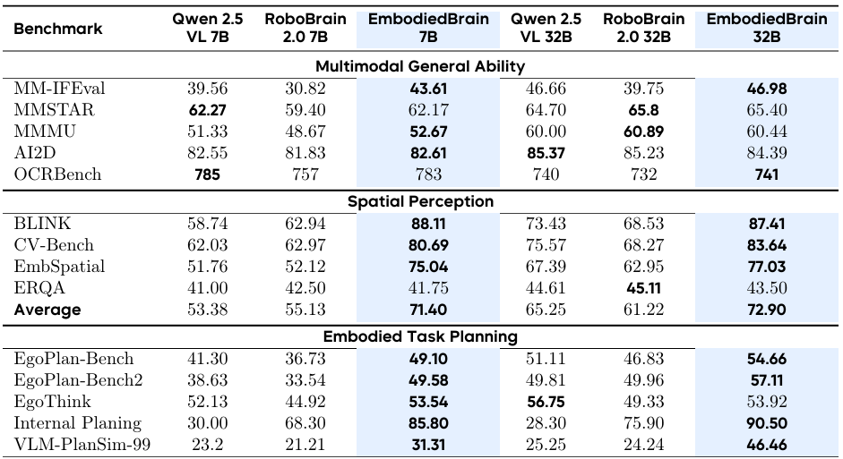 表 1:EmbodiedBrain Benchmark测试对比数据