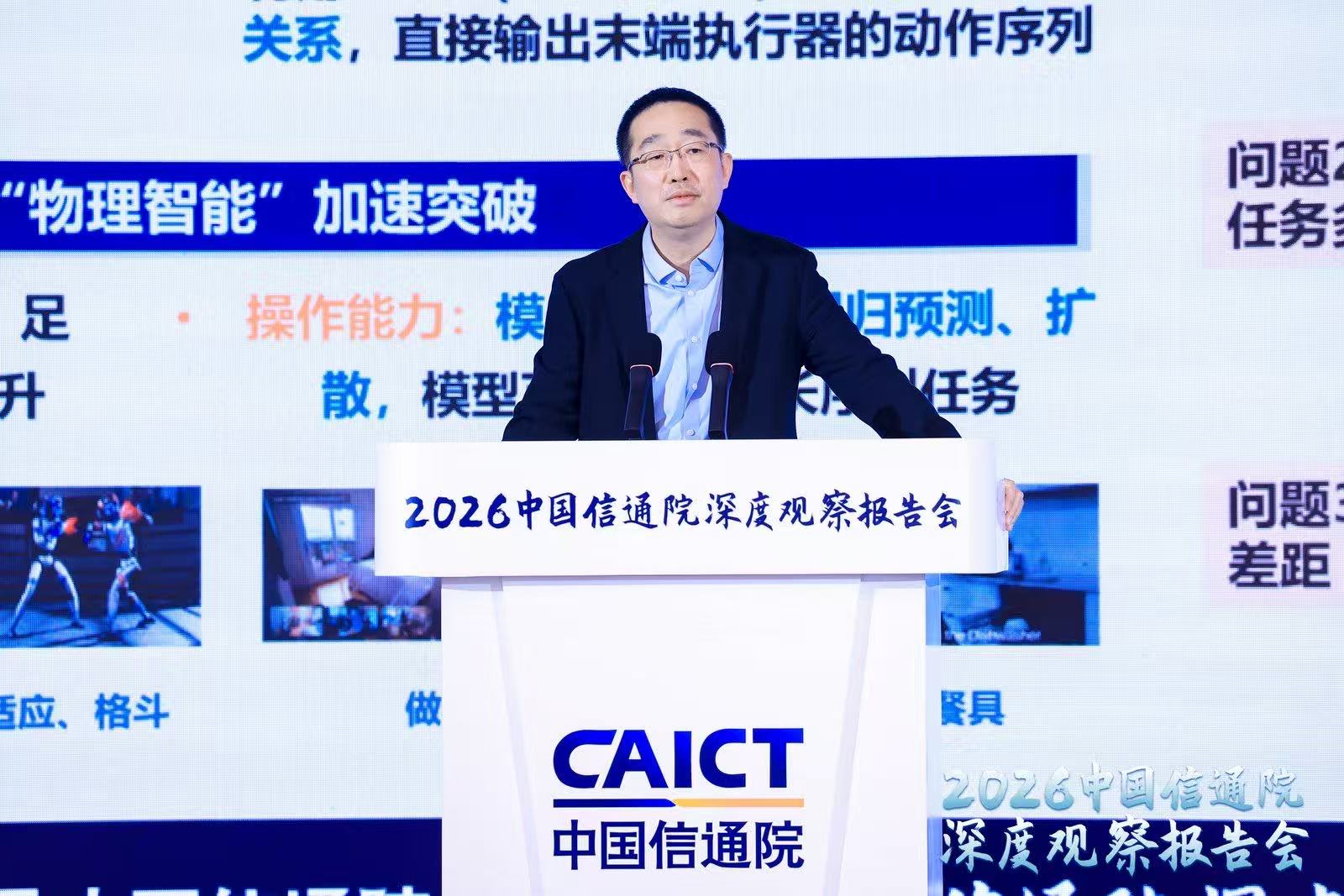 12月13日,“2026中国信通院深度观察报告会”在北京举办。中国信息通信研究院副总工程师许志远针对具身智能发表了自身观点和见解。
