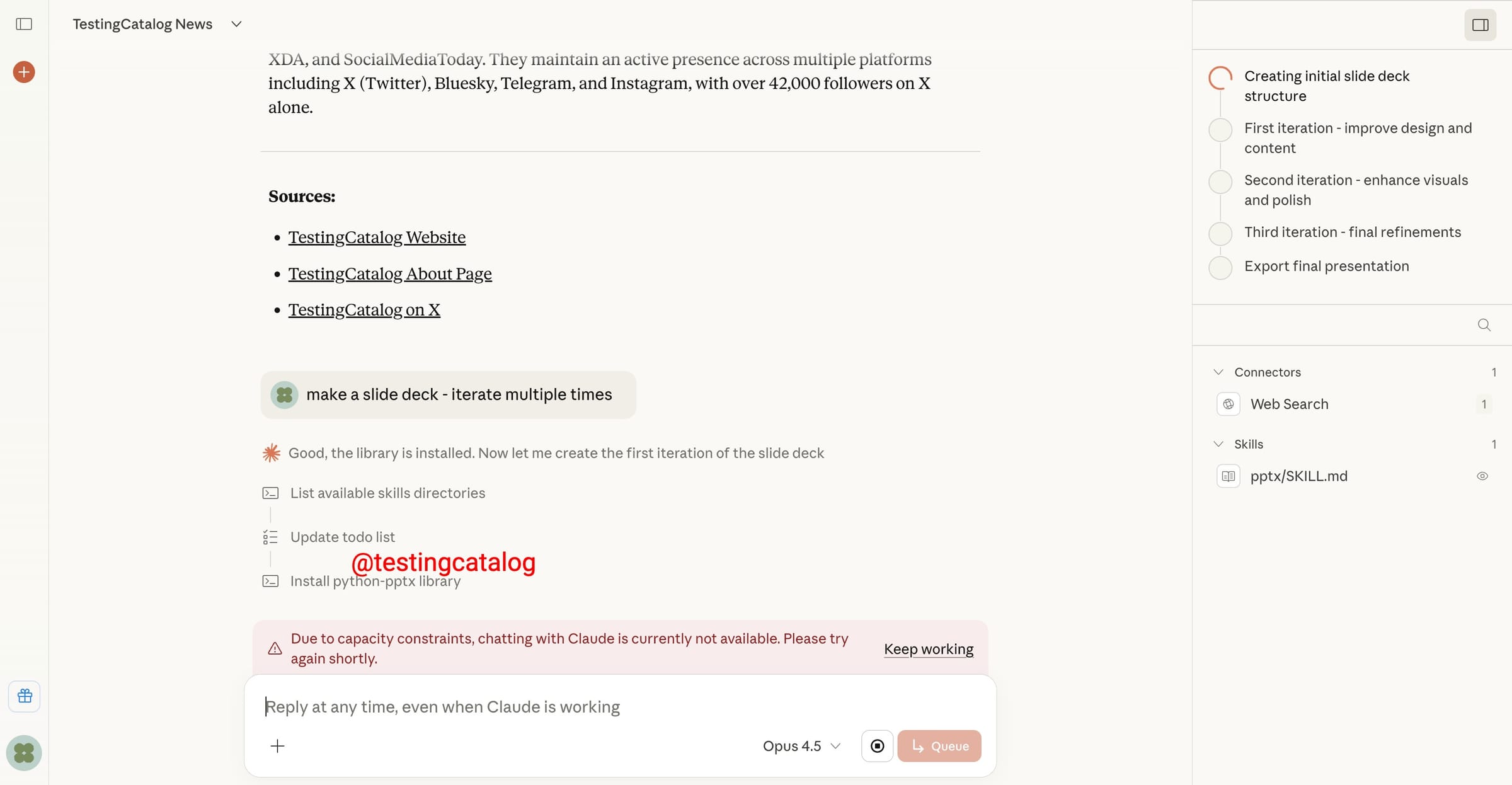 为了实现更强大的自动化能力,Claude 任务模式集成了多种“技能”(Skills)与“模型上下文协议”(MCPs)。系统会根据任务目标,自动调用代码生成、网络搜索或特定工具。