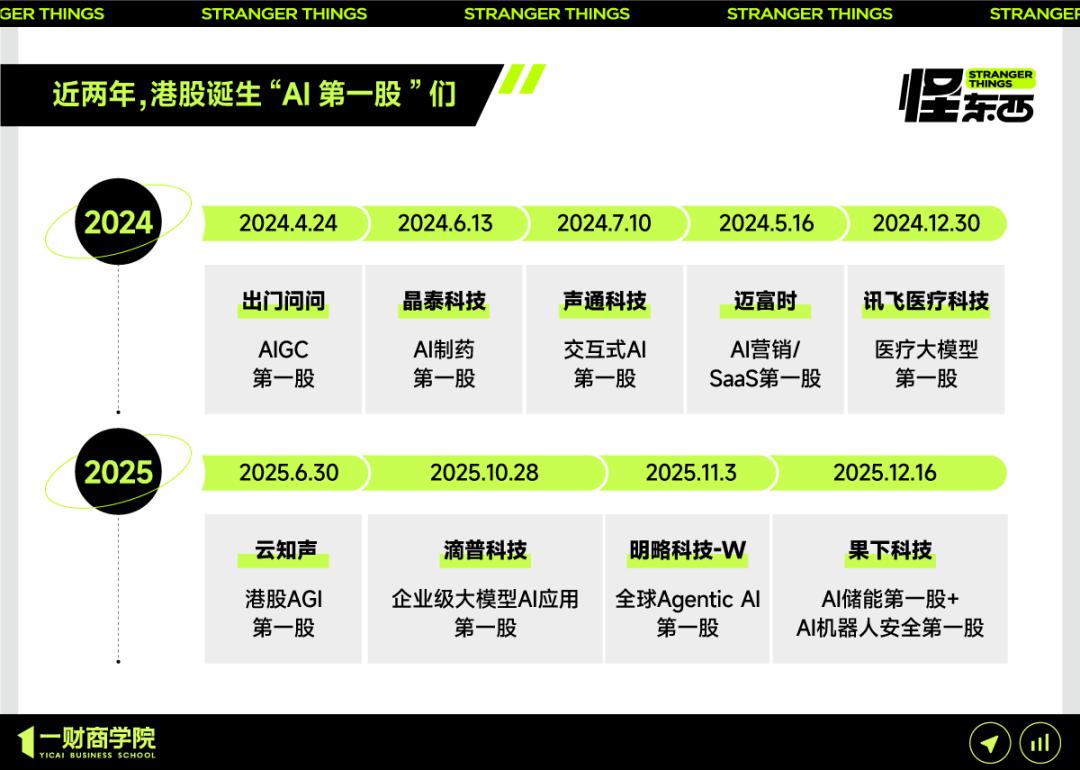 一个最明显的指标是,今年新上市公司中有AI相关的业务的,75%都选择登陆港股,并且港股还诞生了4个“AI第一股”。