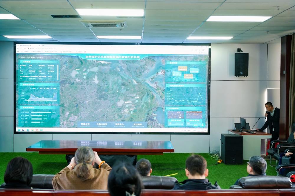 图:中科院地理资源所专家介绍鸟类智慧监测系统部署方案及成效