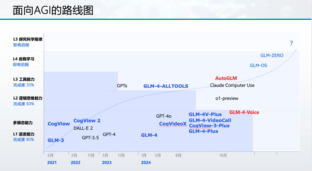 智谱2024年底公开的面向AGI的路线图,图片来源:智谱