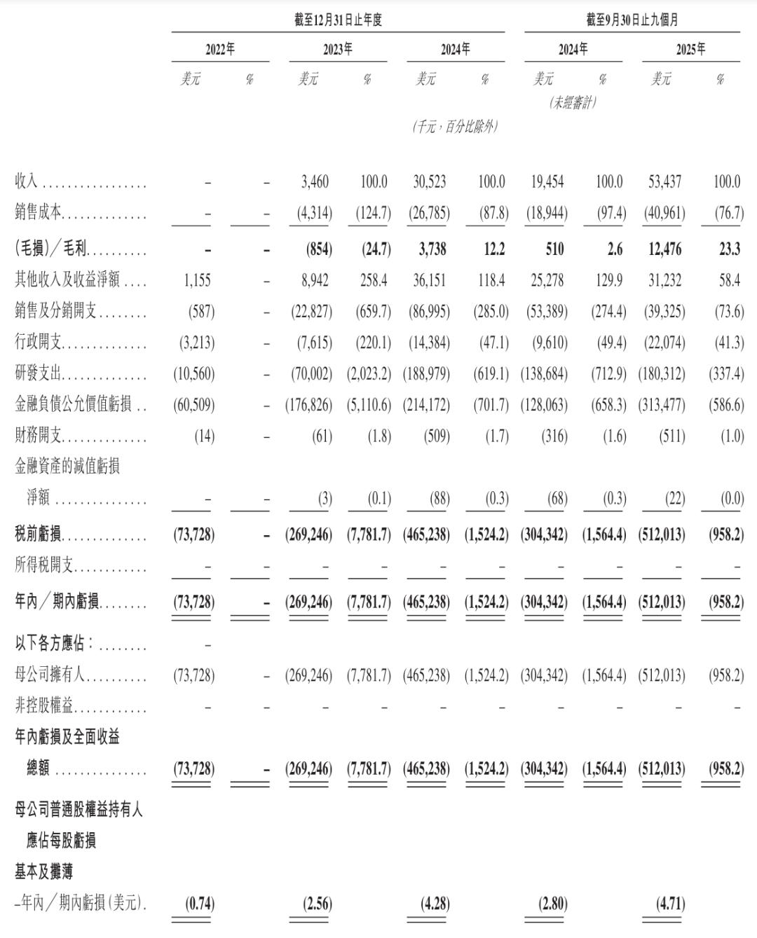 MiniMax在2025年前九个月经调整净亏损在2025年与上年同期相比近乎持平,实现在高速增长下的亏损有效收窄。这得益于多元化的收入模型与高效的费用投入——2025年前九个月,在收入同比增长超170%的同时,研发开支同比增幅为30%,销售及营销开支同比下降26%。