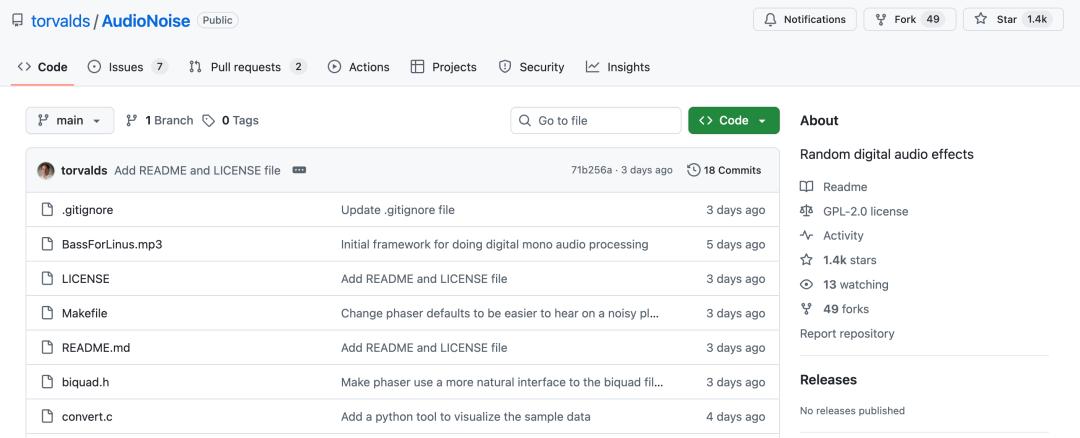 GitHub 地址:https://github.com/torvalds/AudioNoise