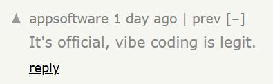 对此,人们的反应既有欢迎的,也有谨慎的。首先当然是普大喜奔:「官宣了,Vibe Coding 是合法的。」