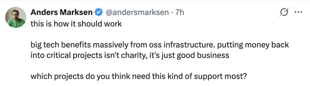 何况,对于拥有天文数字ARR的科技公司来说,如果仅仅是为这些开源项目提供能让他们活下来的资金,简直是顺手的事。