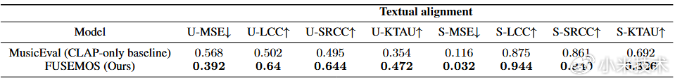 为解决这一问题,本文提出 FUSEMOS,一个融合 CLAP 与 MERT 两大预训练模型的双编码器架构,通过优势互补实现更精准、更贴近人类听觉感知的评估。