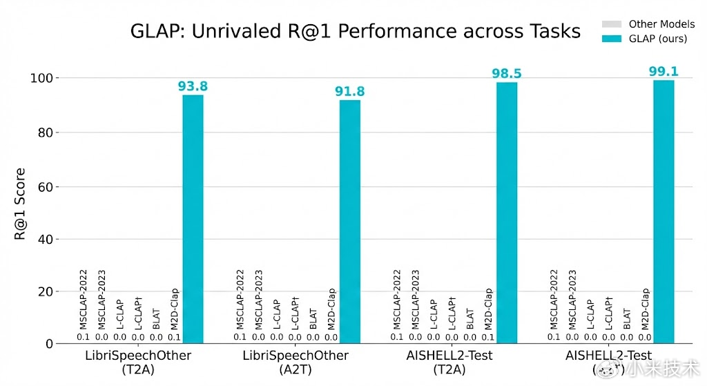 GLAP 作为预训练模型,可直接赋能小米“人车家全生态”中需跨模态理解的场景,如:复杂声学场景下的鲁棒语音交互、车载多模指令理解、家居异常声音监测、以及音乐 / 音频内容的跨语言检索与生成。该模型将显著降低下游产品线(手机、音箱、汽车、可穿戴设备)的音频 AI 研发门槛,实现技术栈统一与效果提升。