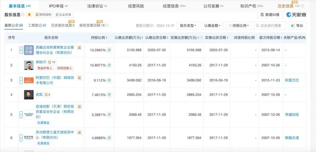 截至目前,阿里巴巴子公司阿里网络直接持有思必驰9.112%股份,仍是第一大外部股东;苏州联想之星持股比例则为4.8888%。