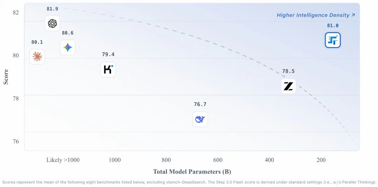 Step 3.5 Flash采用稀疏混合专家架构(MoE),总参数规模1960亿,每token实际激活参数约110亿,在保证模型能力的同时显著提升推理效率,为Agent类应用提供更高效、可负担的底层模型选择。