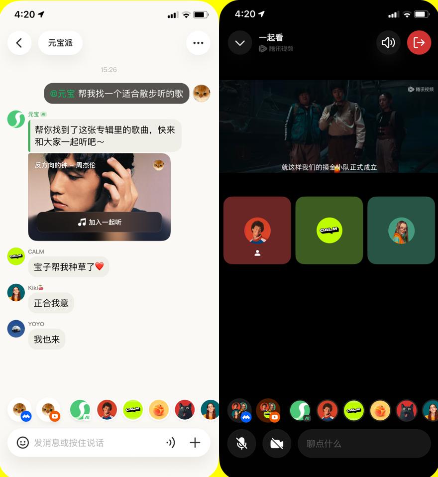 在这个新泳池里,后续还会陆续融入腾讯系的内容资源,让用户们能聚到一起听QQ音乐、一起看腾讯视频等,未来能一起玩游戏也是应有之义,把腾讯社交和内容的禀赋,注入其中,是一次借AI实现生态融合、打破App次元壁的策略,用户会收获全新的体验。