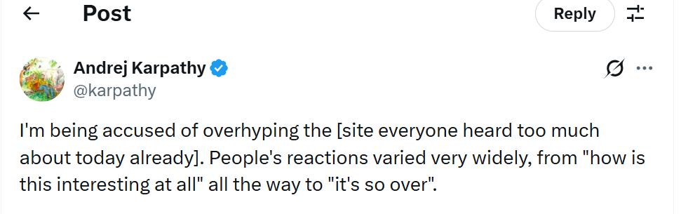 他认为,目前的混乱状态是“实验正在实时运行”的特征。在这个网络中,可能会出现文本病毒的传播、越狱功能的增强、类似僵尸网络的活动,甚至Agent的“幻觉”与人类行为的深度纠缠。尽管现状混乱,但原则上这种大规模自主Agent网络的发展方向是确定的。