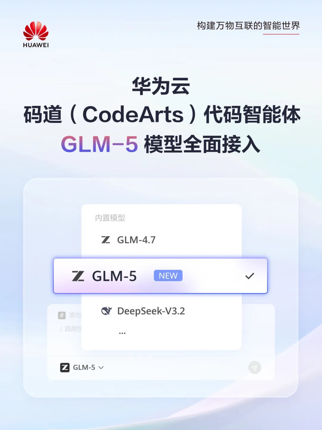 IT之家 2 月 14 日消息,近日,智谱 AI 发布开源模型 GLM-5,其编程与智能体能力达到开源 SOTA 水平,更擅长复杂系统工程与长程 Agent,并且能够以极少的人工干预自主完成 Agentic 长程规划与执行、后端重构和深度调试等系统工程任务。华为今日宣布,华为云码道(CodeArts)代码智能体已全面接入 GLM-5 模型。