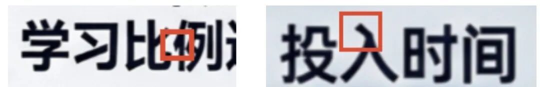 but,还是经不住细看,比如这个比例的「例」字,和投入的「入」字,拐弯处的笔画收口有点毛边,而且是很明显的: