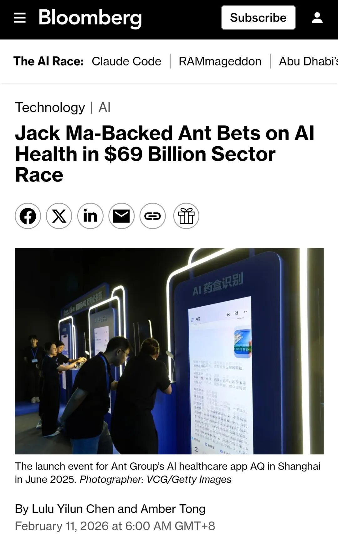 彭博社在近期一篇报道中亦认为,「包括腾讯和 DeepSeek 在内的竞争对手都正在扩大他们的医疗保健专业知识,但是蚂蚁则很早就站稳了脚跟。」